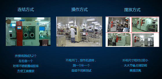 在線式高低溫試驗箱設備可長期在線低溫運行玻璃使用大視窗,門上附帶兩個可供操作的操作孔(硅膠防靜電),可在觀察產品的同時進行取拿產品。高效:以10G SFP+為例,一個班(10個小時)可產1800支模塊 -